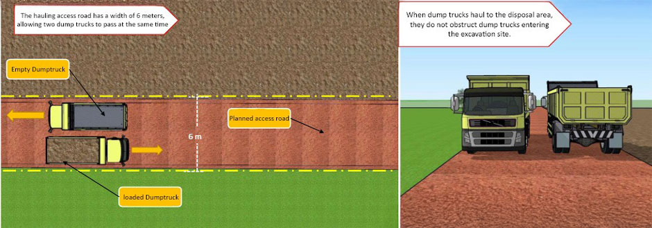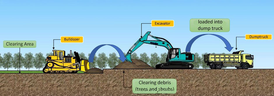 - Pembuangan: Tanah hasil pembersihan diangkut dengan dump truck ke lokasi pembuangan yang telah ditetapkan, sesuai persetujuan pengawas lapangan atau kontraktor.
