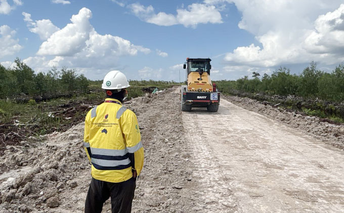 - Aktivitas: Dilaksanakan menggunakan bulldozer untuk membersihkan vegetasi dan akar pohon, serta mencapai elevasi yang ditentukan.